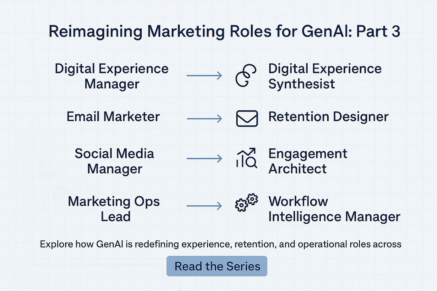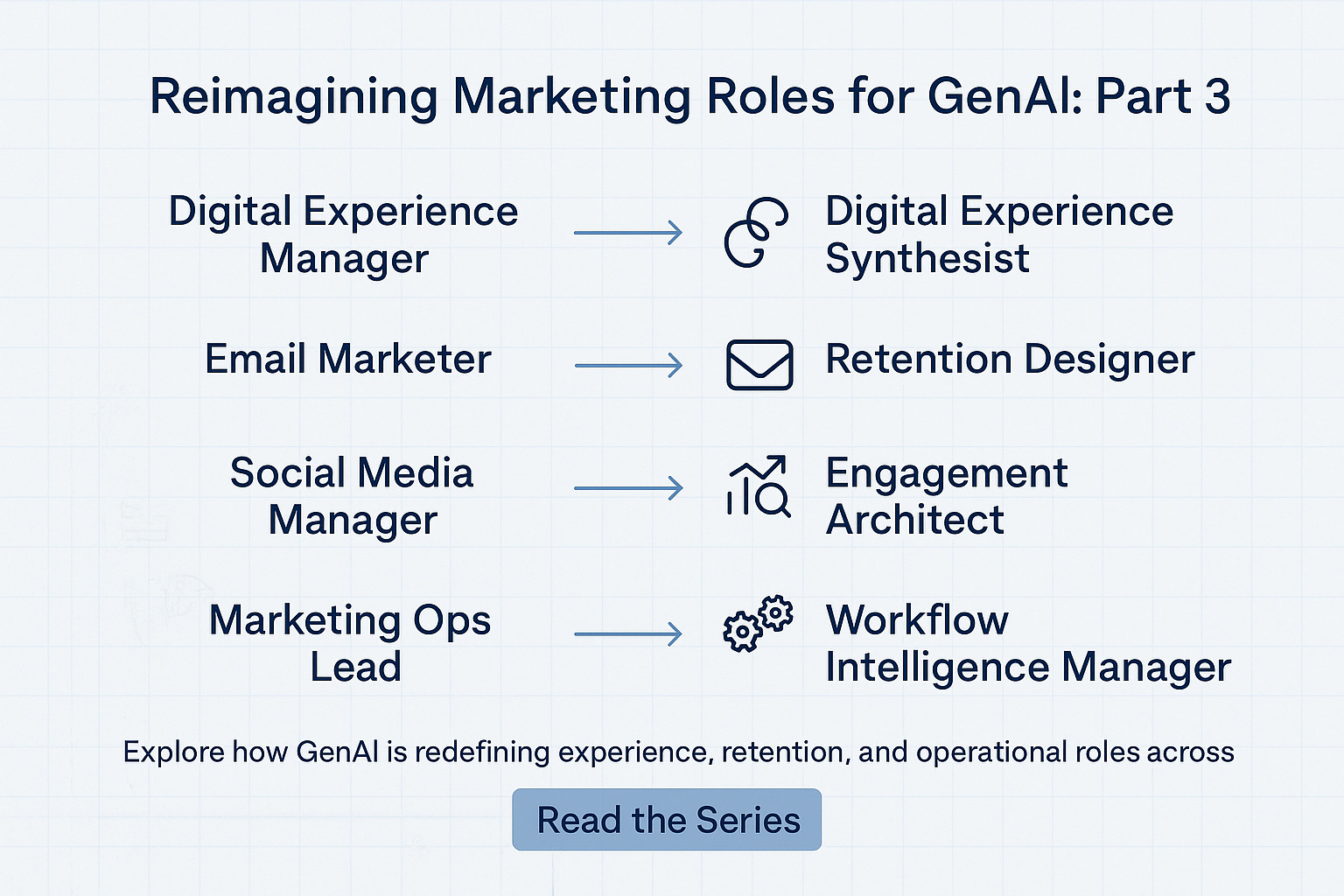 Trust earned you visibility. Now we explore how to keep it. In this installment, we look at how GenAI is quietly rewriting the way marketers engage, retain, and guide users — even across multimodal and AI-mediated experiences. Specifically, how their roles will evolve and grow.