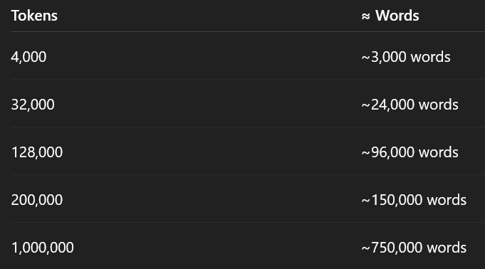 1 token ≈ 0.75 words (please remember, the ≈ means approximate/roughly)