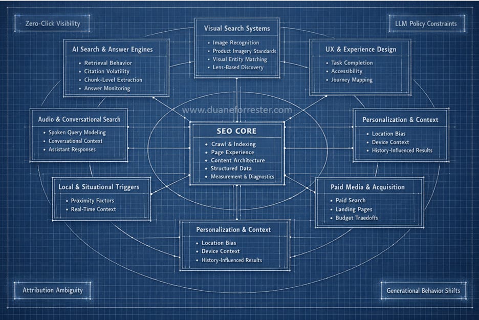 This is why SEO keeps getting pulled into UX conversations, brand discussions, PR alignment, attribution debates, and content format decisions. Not because SEO owns those disciplines, but because SEO sits closest to the fault lines where discovery breaks or holds.
